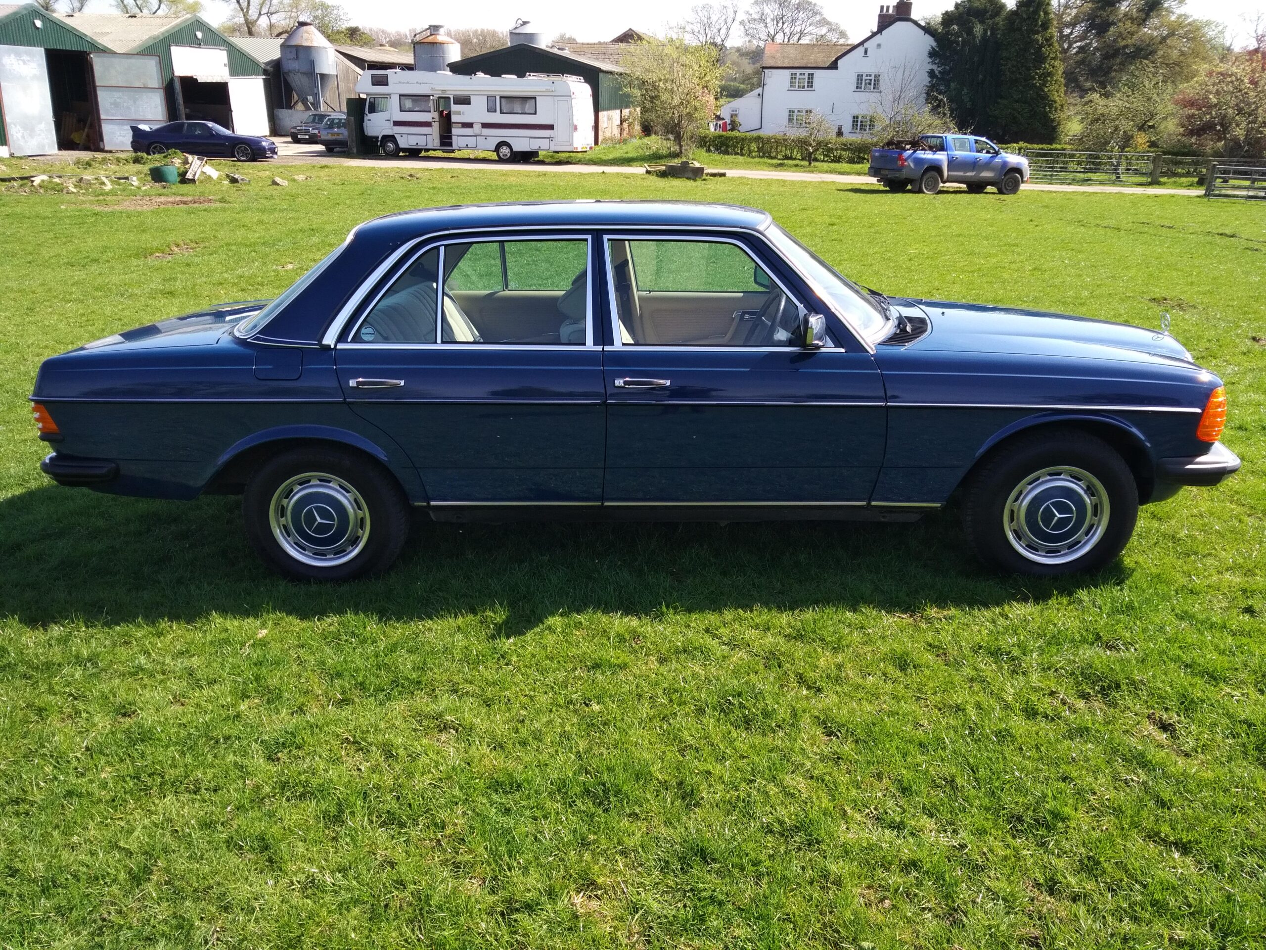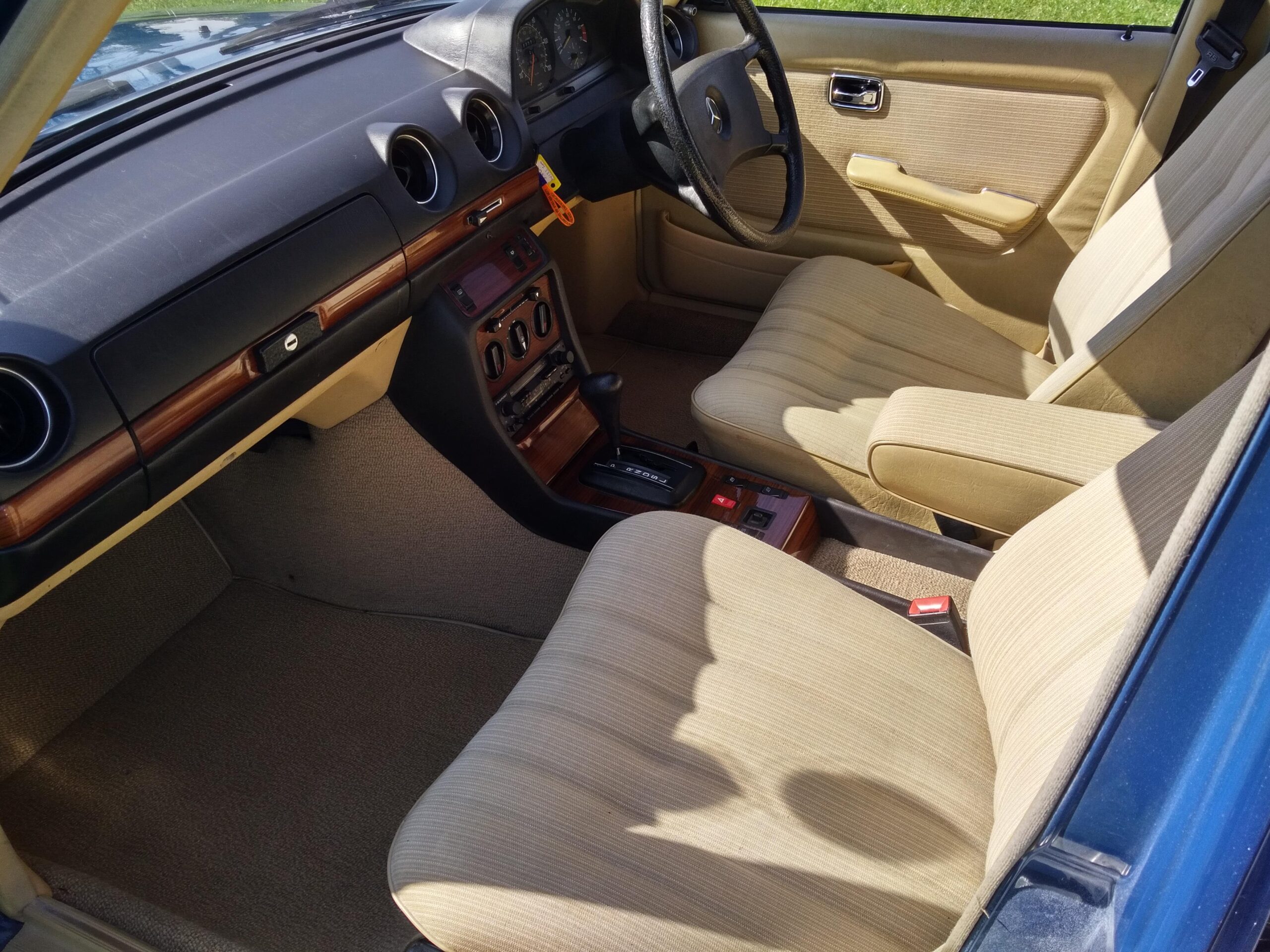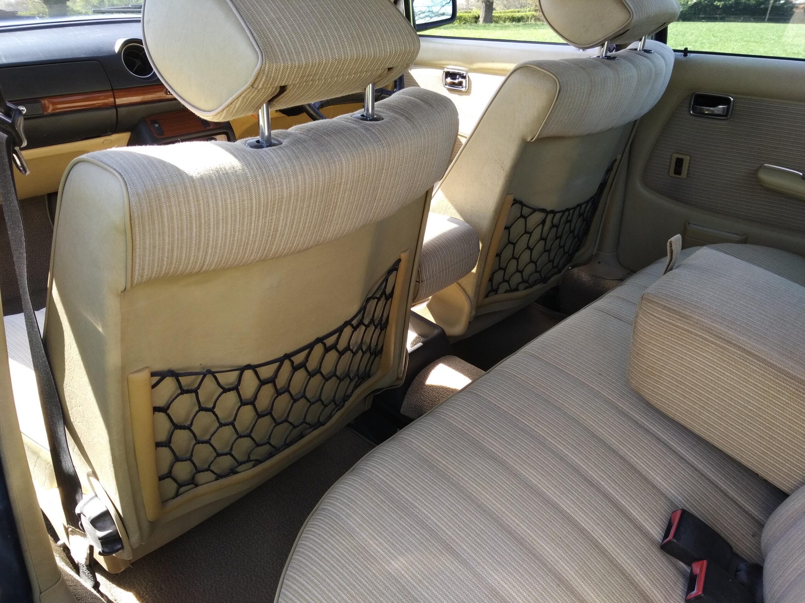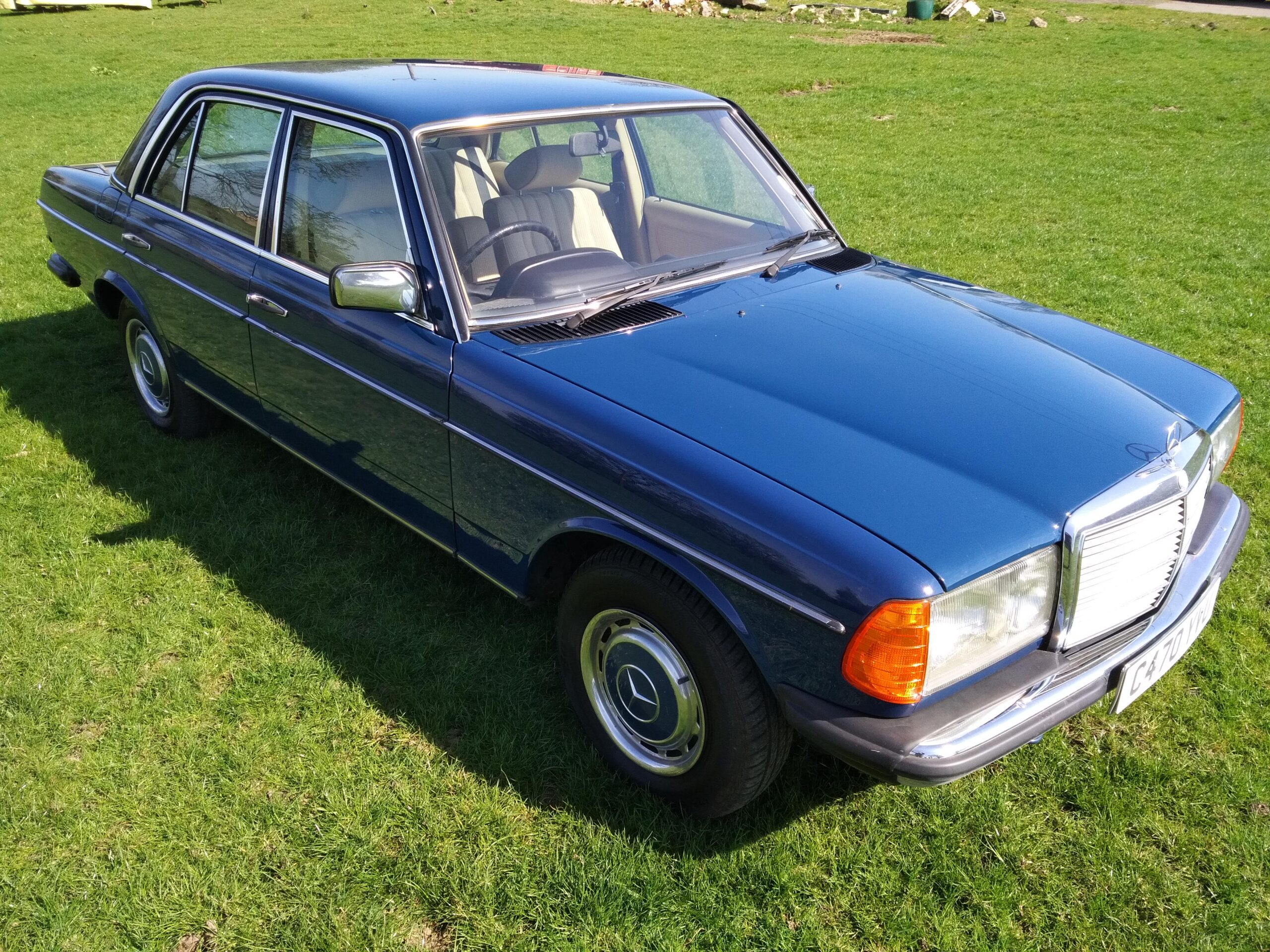 The car has been kept well garaged and regularly cleaned and polished, with the result that it still looks lovely. Paintwork and chrome are excellent and the interior is virtually unmarked except for some slight ‘bobbling’ on the cloth of the driver’s seat base. Several years ago the front wings were replaced and a few other bodywork areas attended to, all of which is holding up very well. There are a few other minor cosmetic blemishes, but even so we feel that it is still among the highest percentile quality-wise of the remaining W123 population. Being the smallest engined variant of the model progress is of course leisurely, bit it is a pleasure to drive and feels like a much younger car.