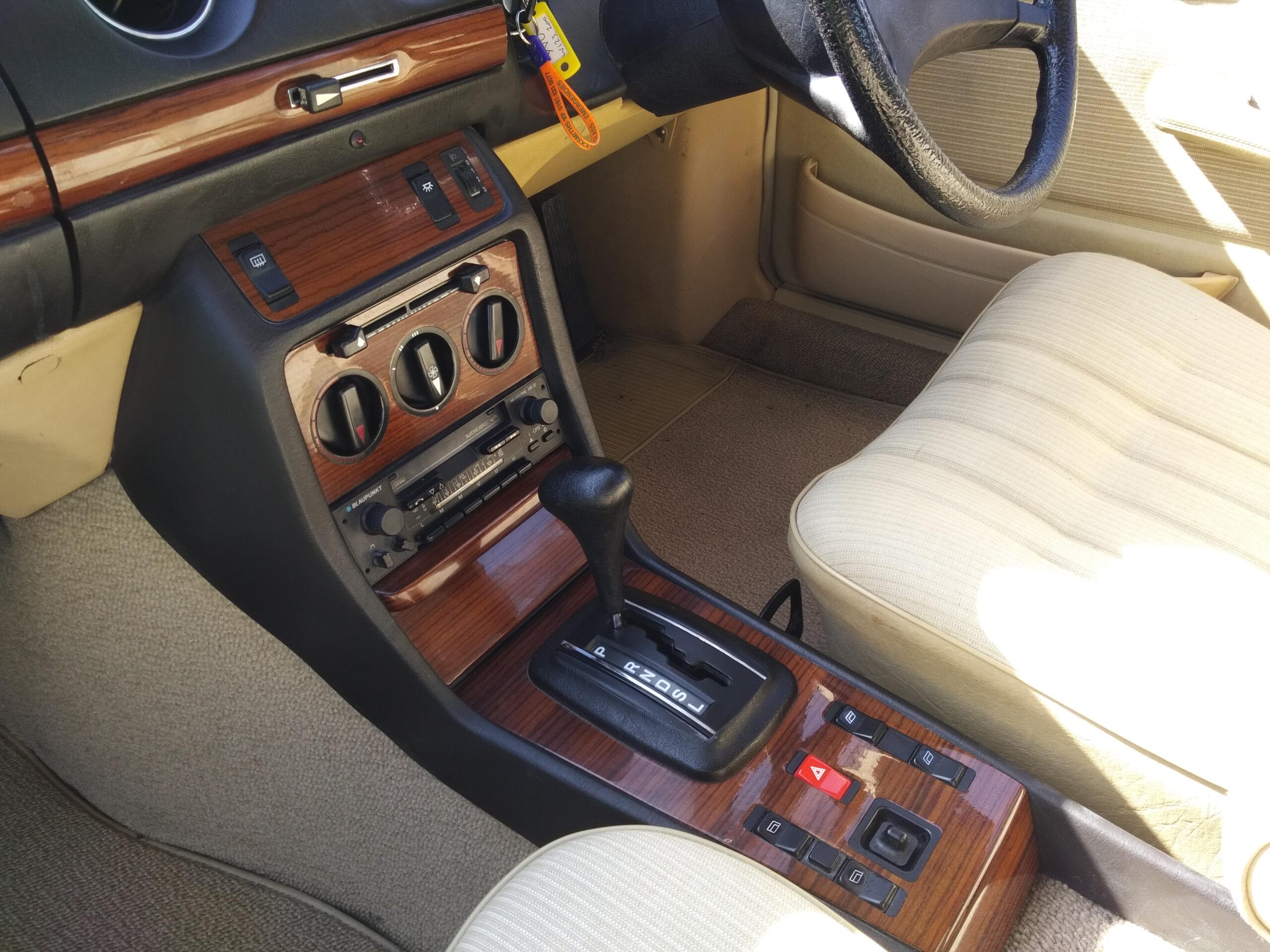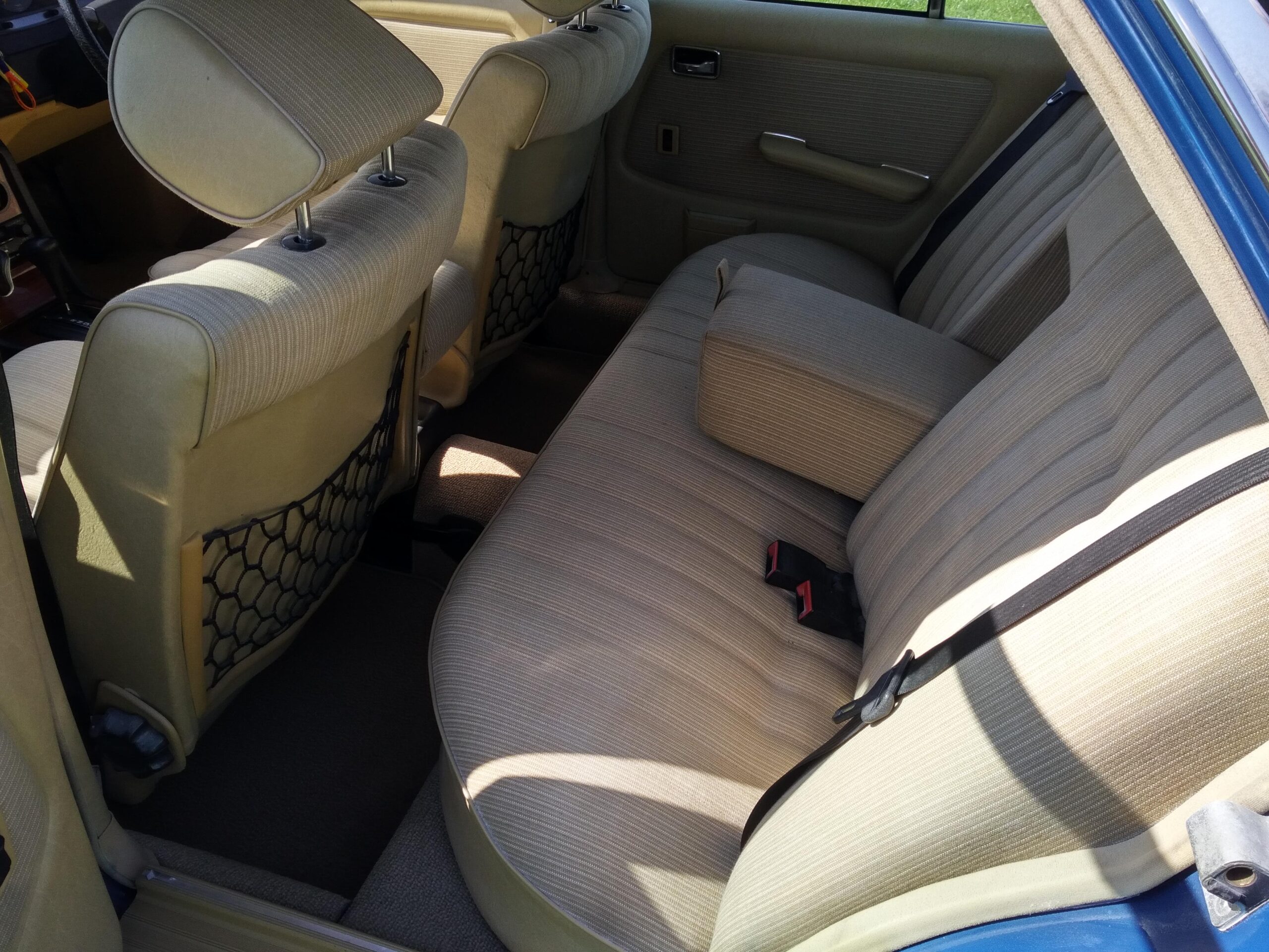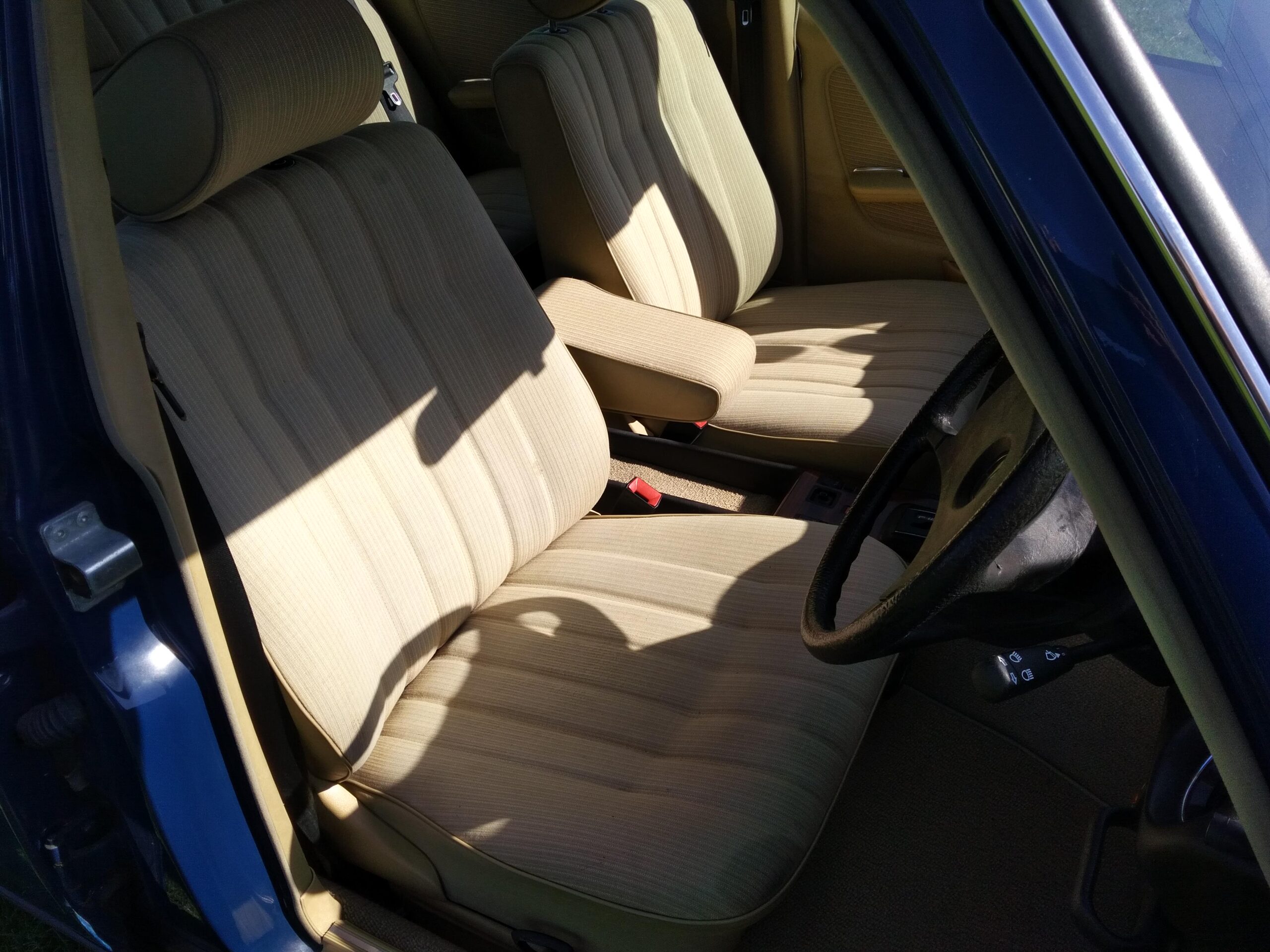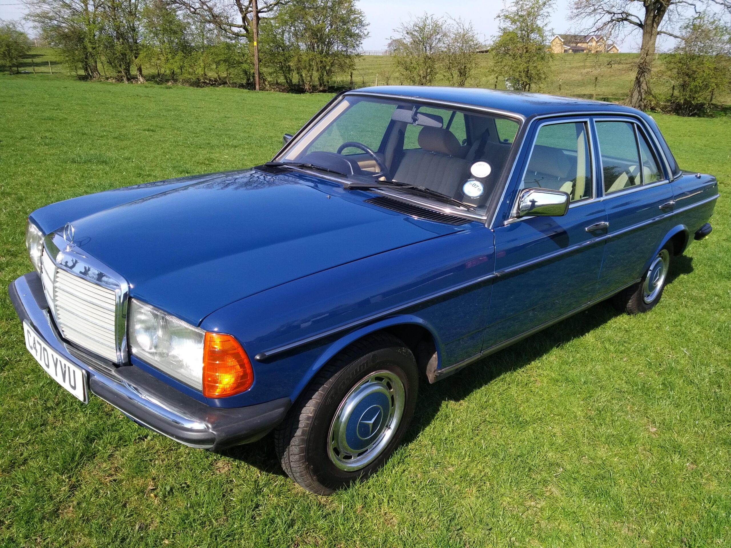 The car has been kept well garaged and regularly cleaned and polished, with the result that it still looks lovely. Paintwork and chrome are excellent and the interior is virtually unmarked except for some slight ‘bobbling’ on the cloth of the driver’s seat base. Several years ago the front wings were replaced and a few other bodywork areas attended to, all of which is holding up very well. There are a few other minor cosmetic blemishes, but even so we feel that it is still among the highest percentile quality-wise of the remaining W123 population. Being the smallest engined variant of the model progress is of course leisurely, bit it is a pleasure to drive and feels like a much younger car.