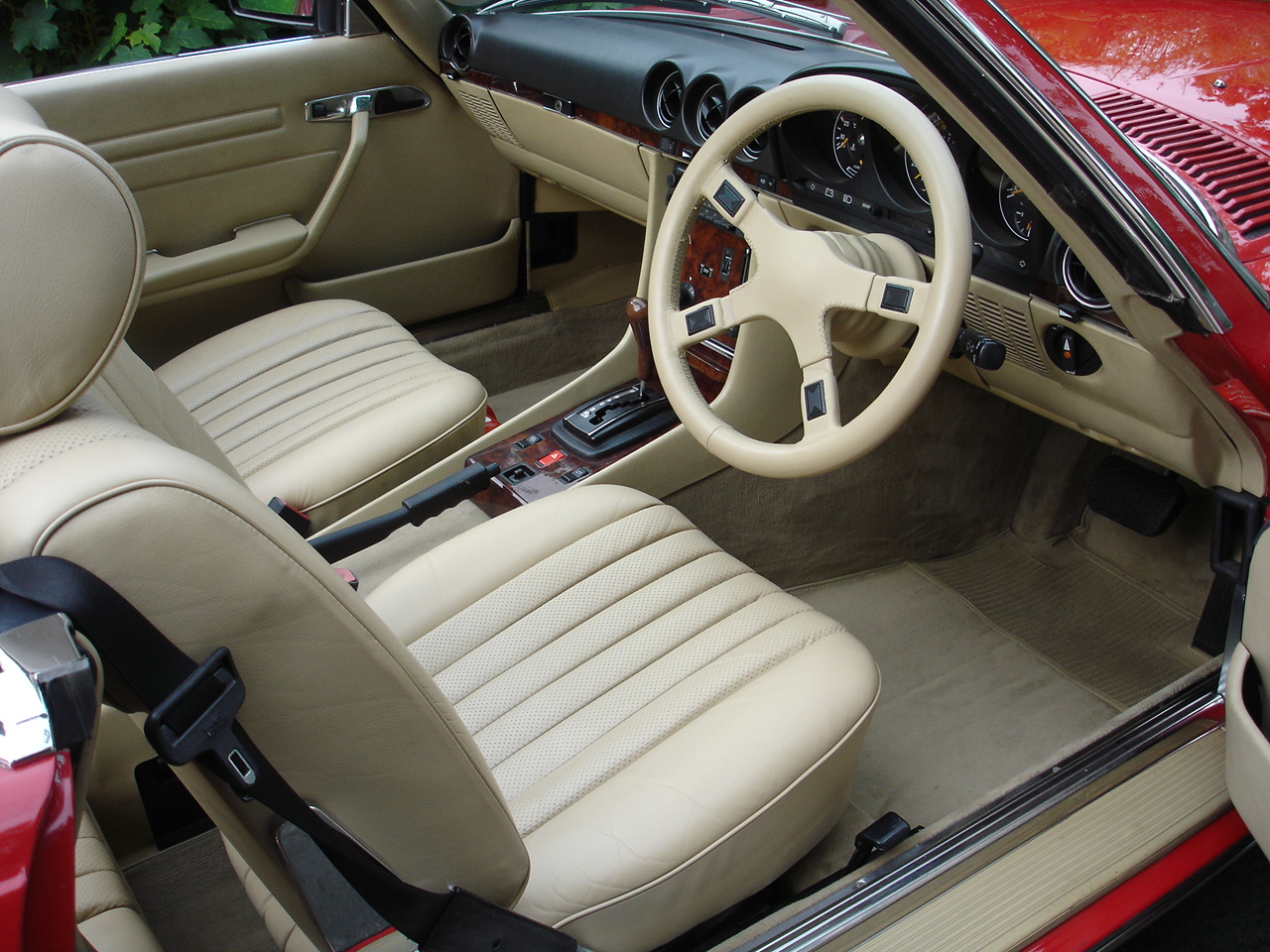 This incredibly original SL in the much admired combination of red with cream interior looks almost as good now as when it emerged from the factory in 1985. Its condition is commensurate with its mileage, i.e. virtually as new. The paintwork, brightwork, chrome, wheels, glass etc. are all pristine, and the interior trim and soft top show only the lightest patina. It is without doubt one of the best quality R107s we have seen and it drives like a new car.