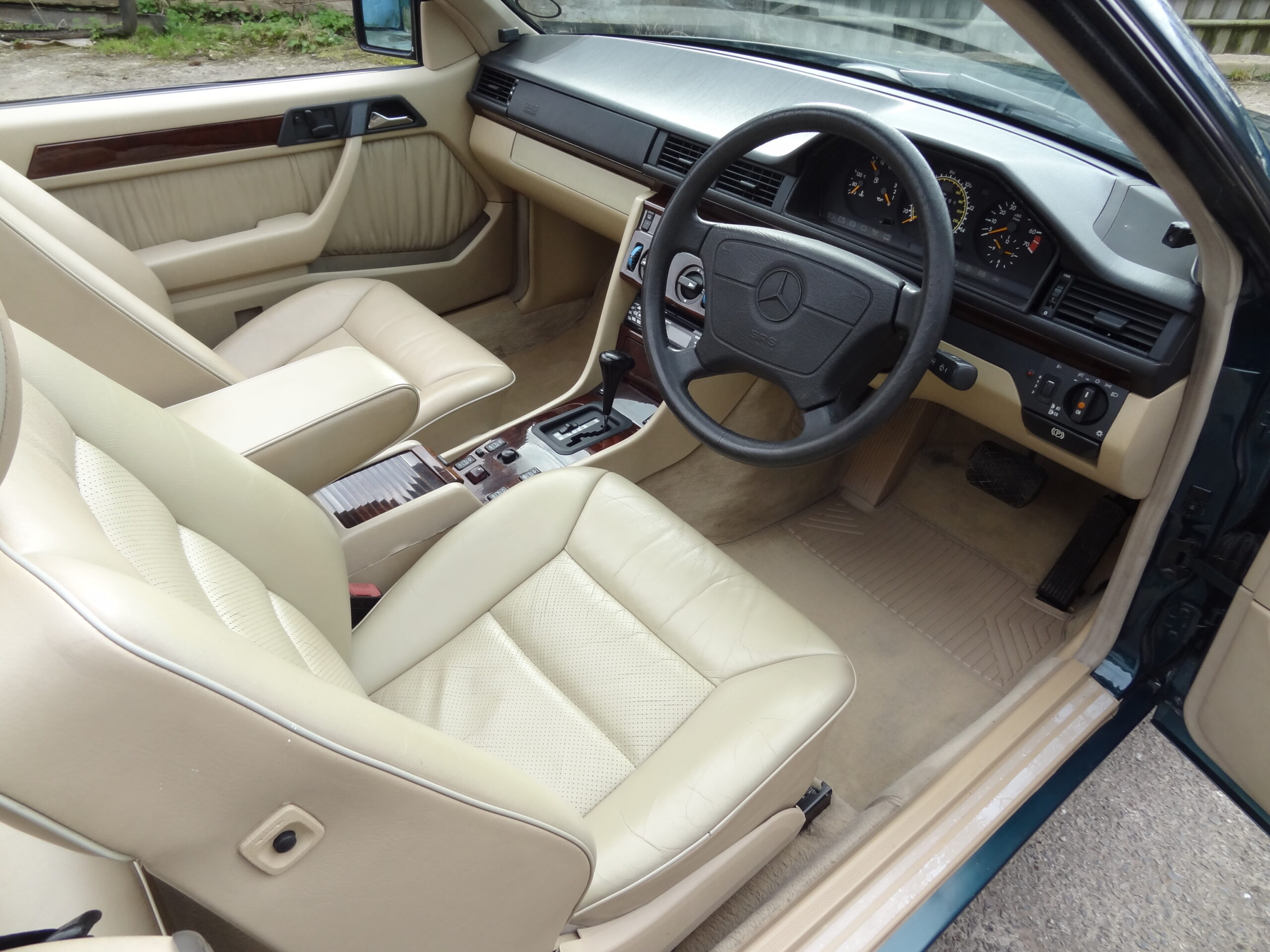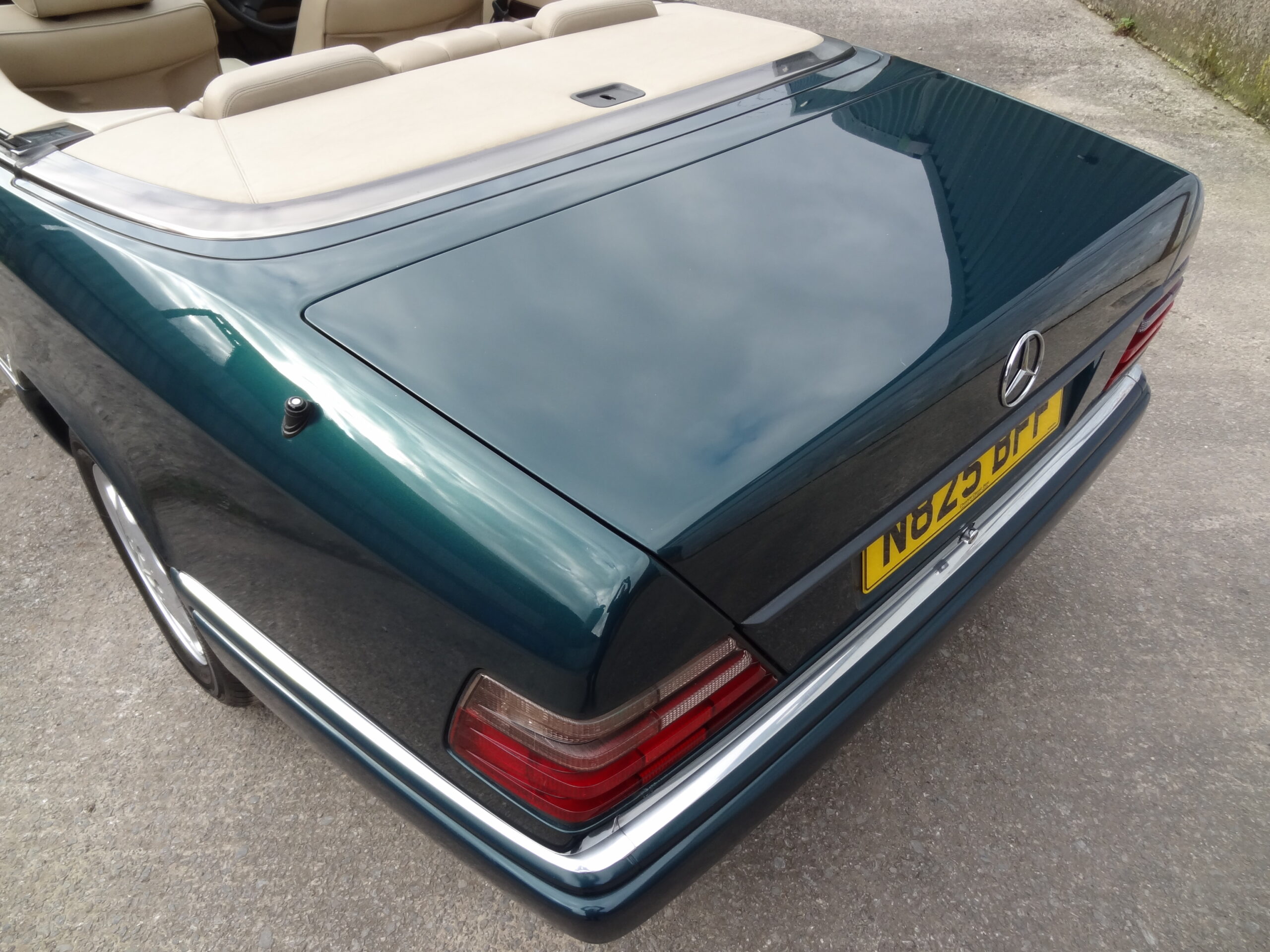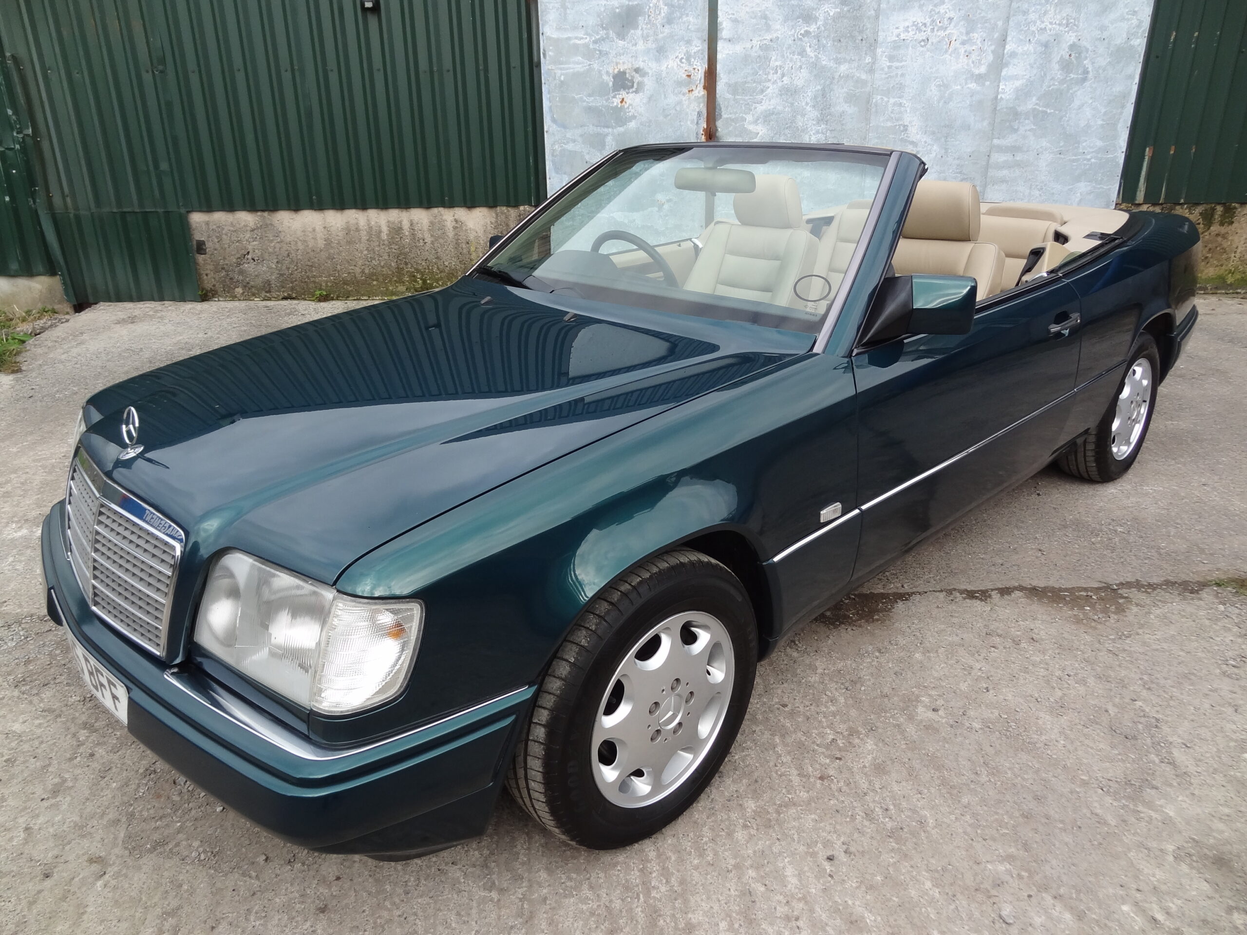 Tourmaline Green metallic, black power operated soft top with glass heated rear screen, Mushroom leather, 4 speed automatic gearbox, electric front seats (driver’s with memory), heated front seats, leather steering wheel, driver and passenger airbags, front and rear armrests, illuminated vanity mirrors, central storage box, original 8 hole alloy wheels, Clarion radio/CD player, central locking, all original tools and manuals, full service history, 95,000 miles.