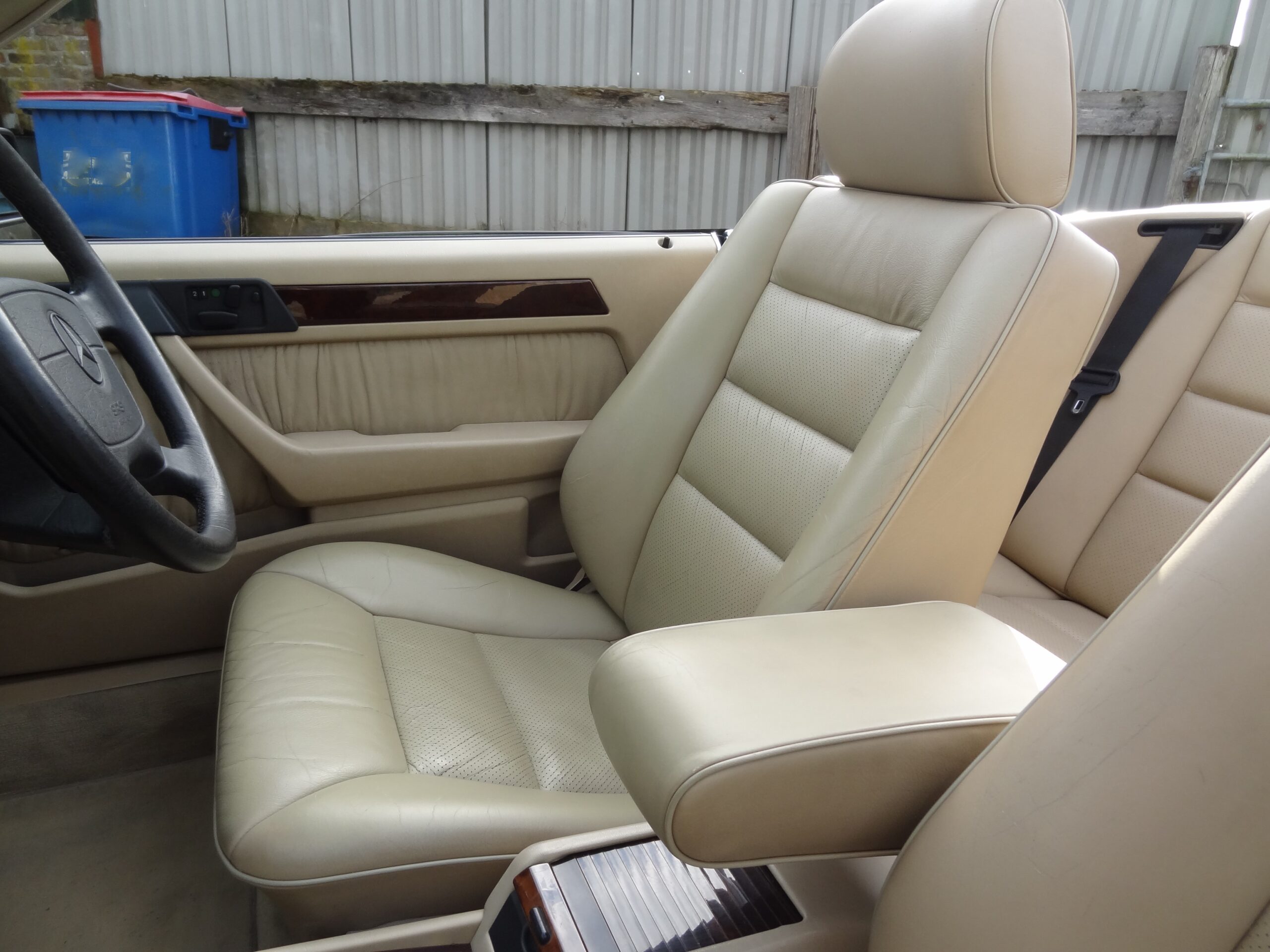 This beautiful cabriolet, one of the very last to be built, was supplied new with full UK specification to a member of the British Army Garrison at Paderborn, Germany in February 1996 under the NATO forces tax-free scheme. He kept it for the six months minimum required under the scheme rules, covering around 9,000 miles in that time, then sold it to Lancaster Mercedes of Ipswich. They supplied it to a gentleman in North London, who kept it for 11 years until 2007, after which it went to a clock maker in Llandudno. After three years ownership he sold it to a gentleman in Keighley and in 2012 it was purchased by its latest owner, a retired gentleman near Altrincham, Greater Manchester. He had intended it to be the car for his retirement, but unfortunately he developed health problems not long after buying it. The car remained in storage until his death and we purchased it from his widow quite recently.